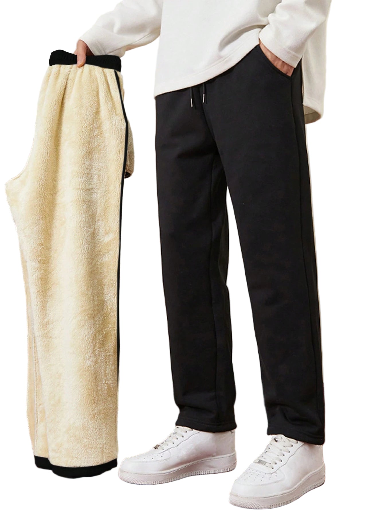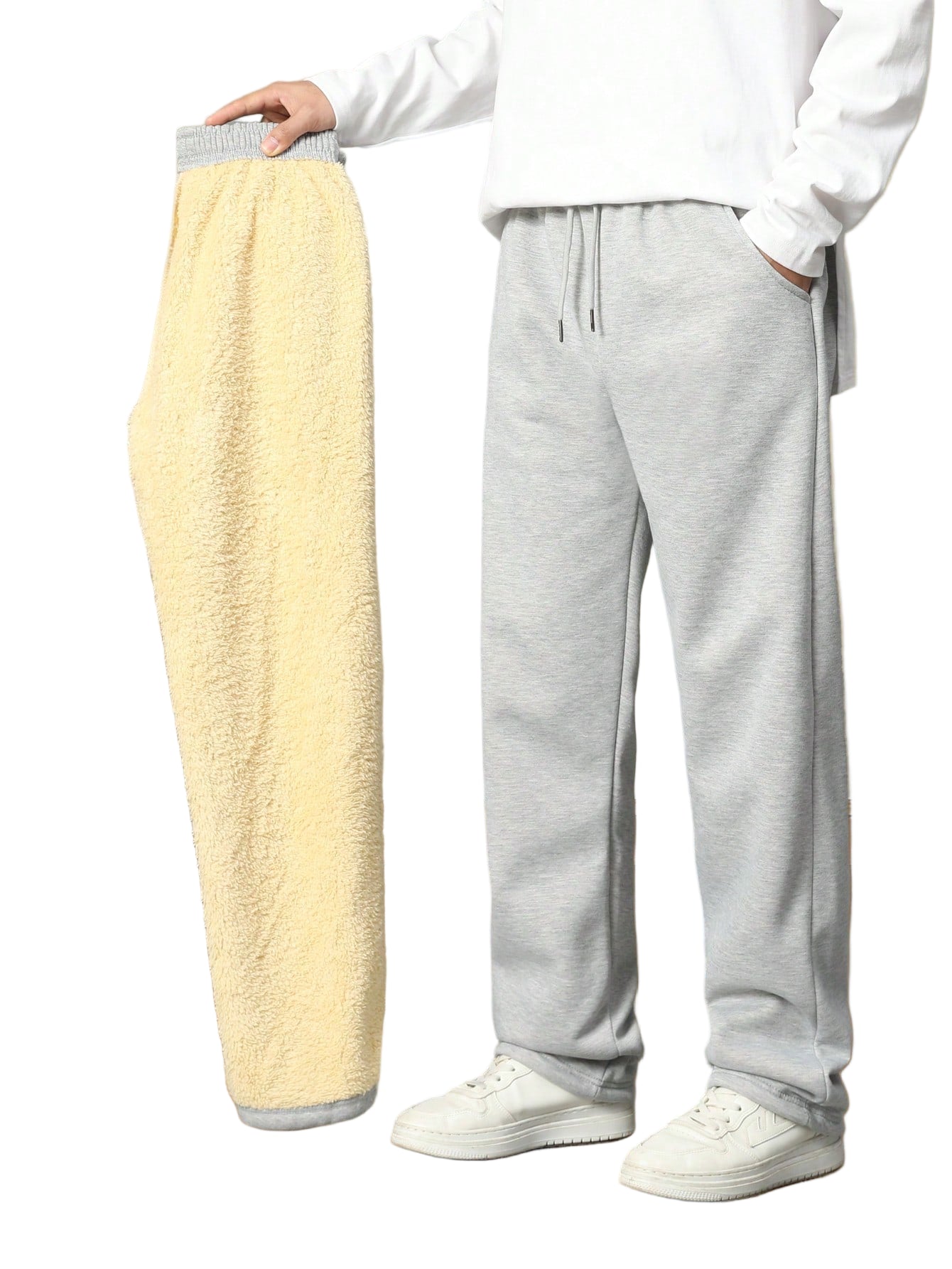 Men's Solid Color Drawstring Thermal Lined Sweatpants