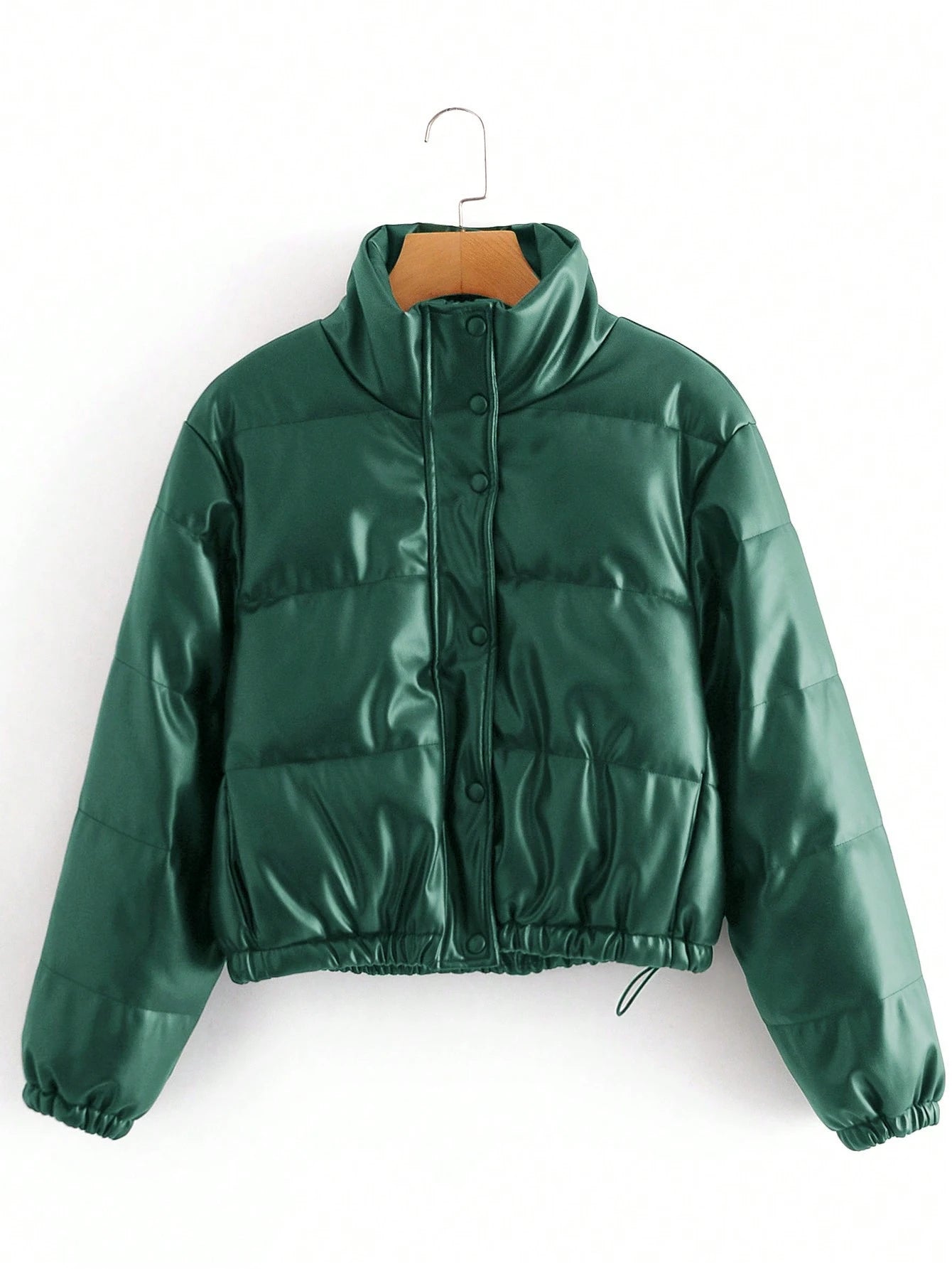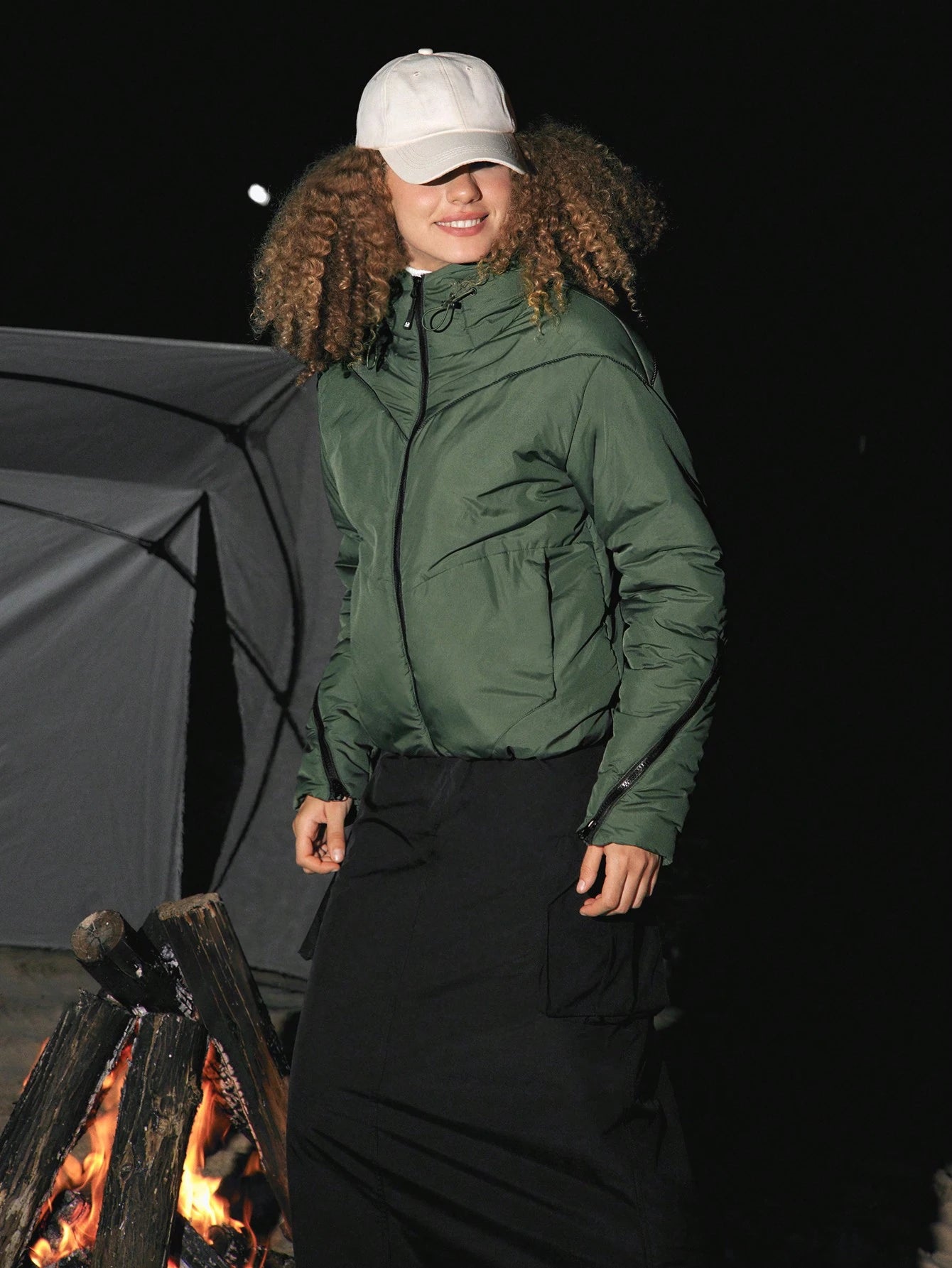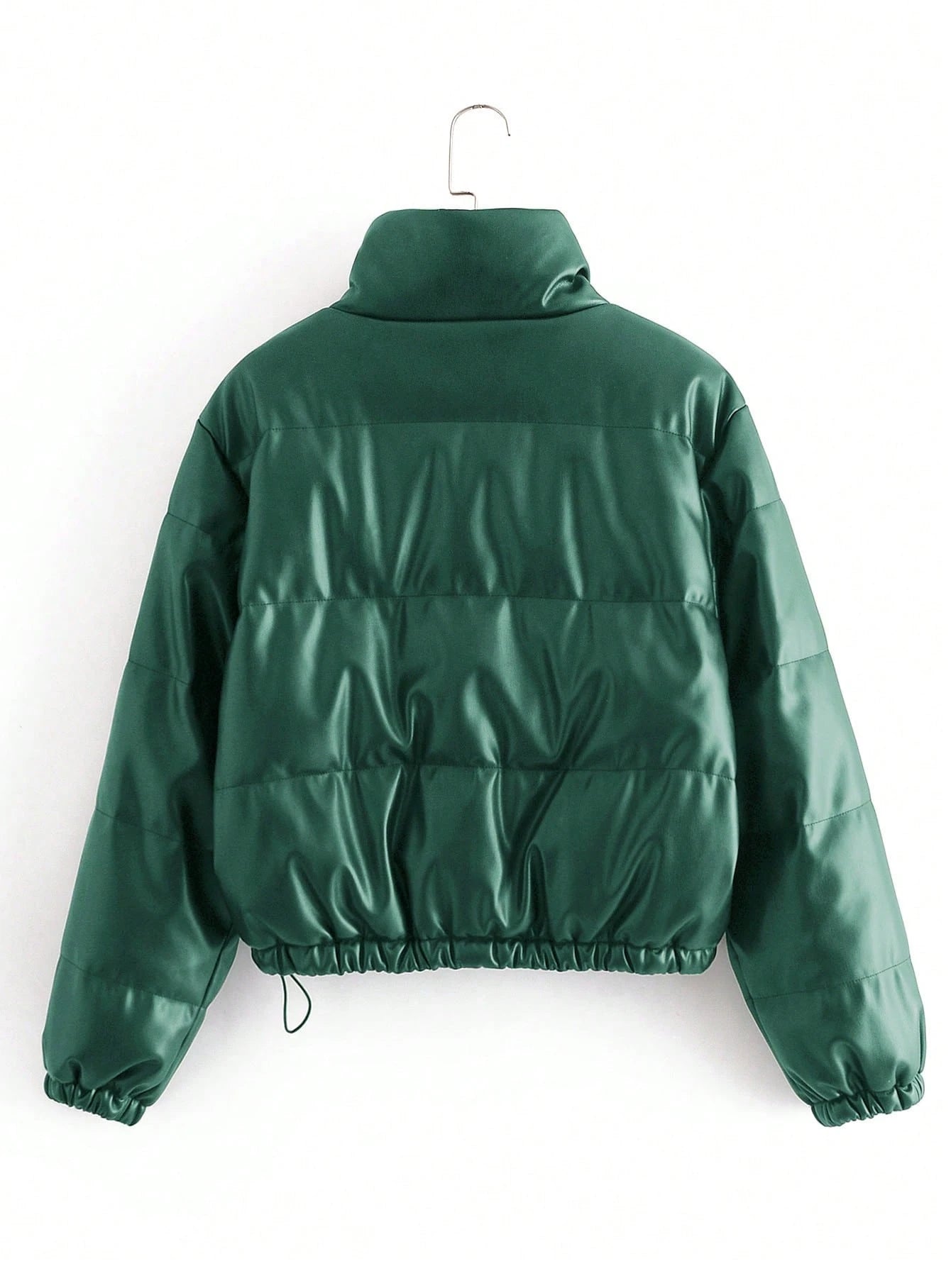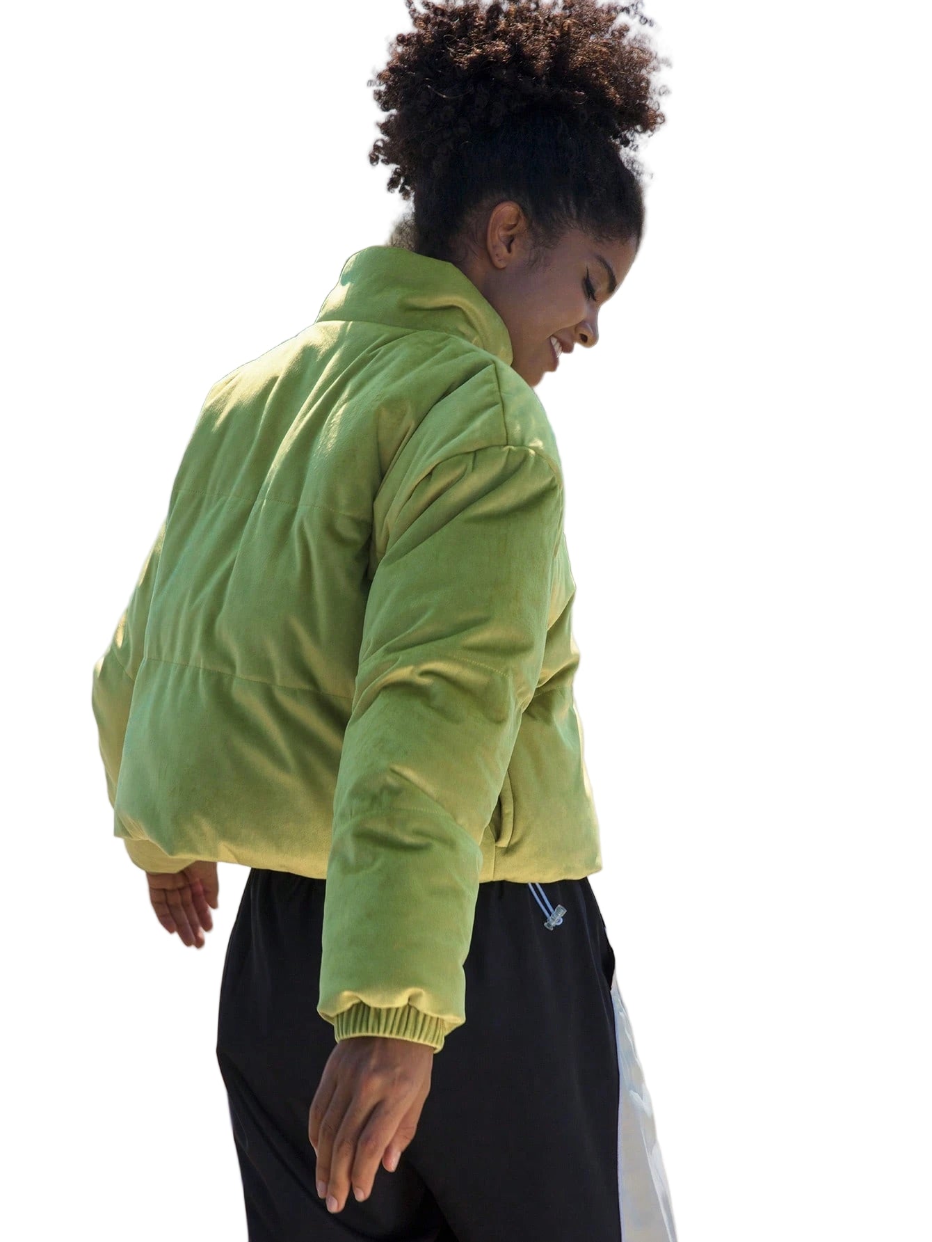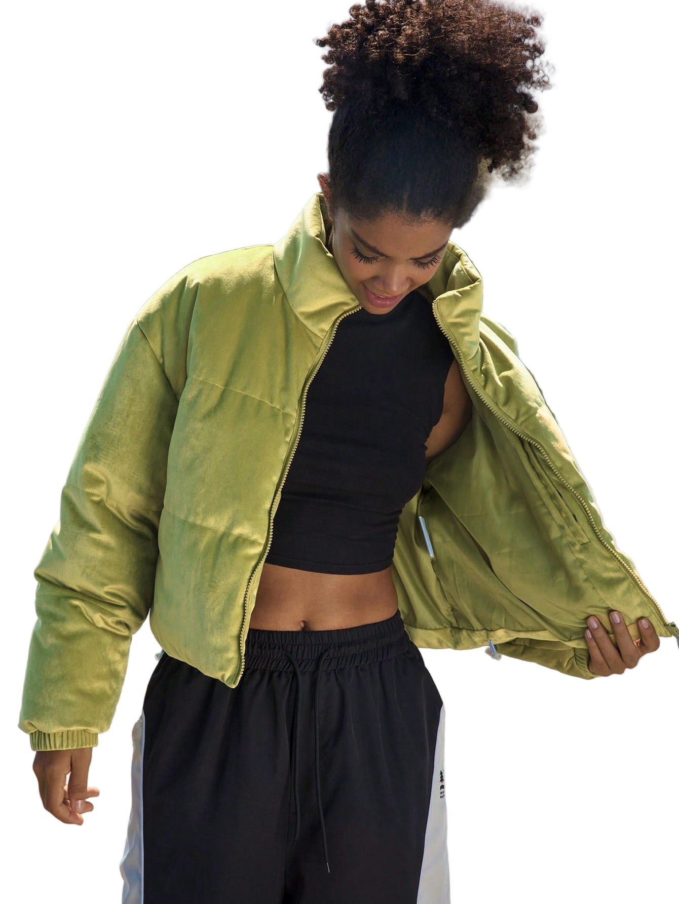 Zip Up Drawstring Hem Crop Velour Padded Coat